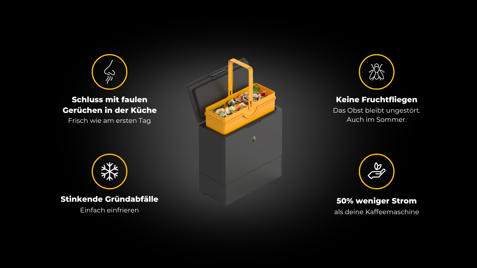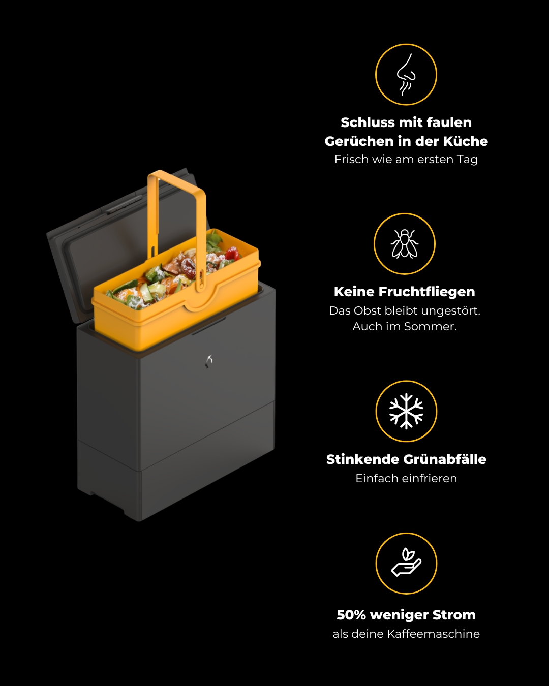 Der Freezyboy ist ein langjähriges Investment. Mal angenommen, du nutzt ihn 10 Jahre. Dann sind das nur 27 Rappen pro Tag, damit deine Küche nicht mehr stinkt. Selbst dein Morgenkaffee kostet mehr.